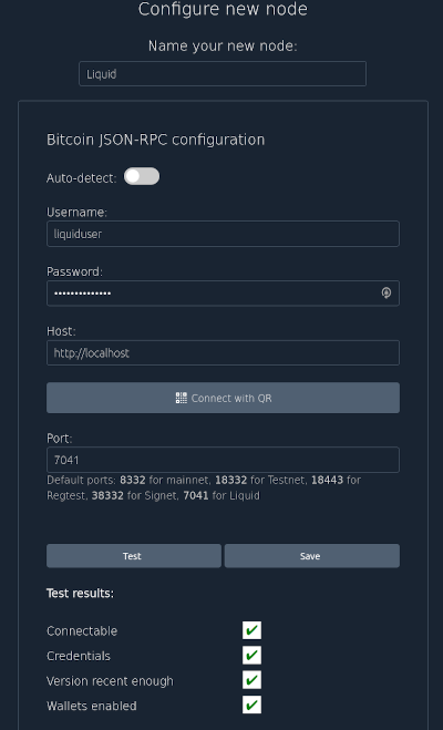 We assume here, that you're running the liquid node on the same machine than the core-node, therefore localhost. Get the values for mainchainrpcuser and mainchainrpcpassword from your bitcoin.conf. You can choose rpcuser and rpcpassword as you like. You'll later need that in specter, to configure access to the elements-node, similiar than to the core-node.