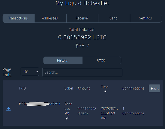 The process of creating a Liquid Hotwallet is very similiar to creating a Bitcoin-Core Hotwallet. First you need to create a Hotwallet-Device Add new device -> Elements Core (hot wallet) -> Continue -> Enter Name -> Continue (Don't forget to note the seed).